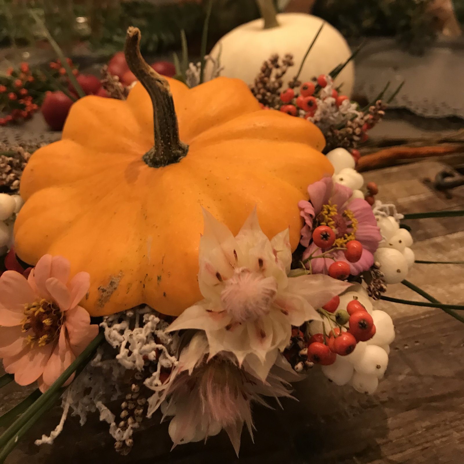 秋らしいお色味の、オレンジや赤、紫のお花が人気です。